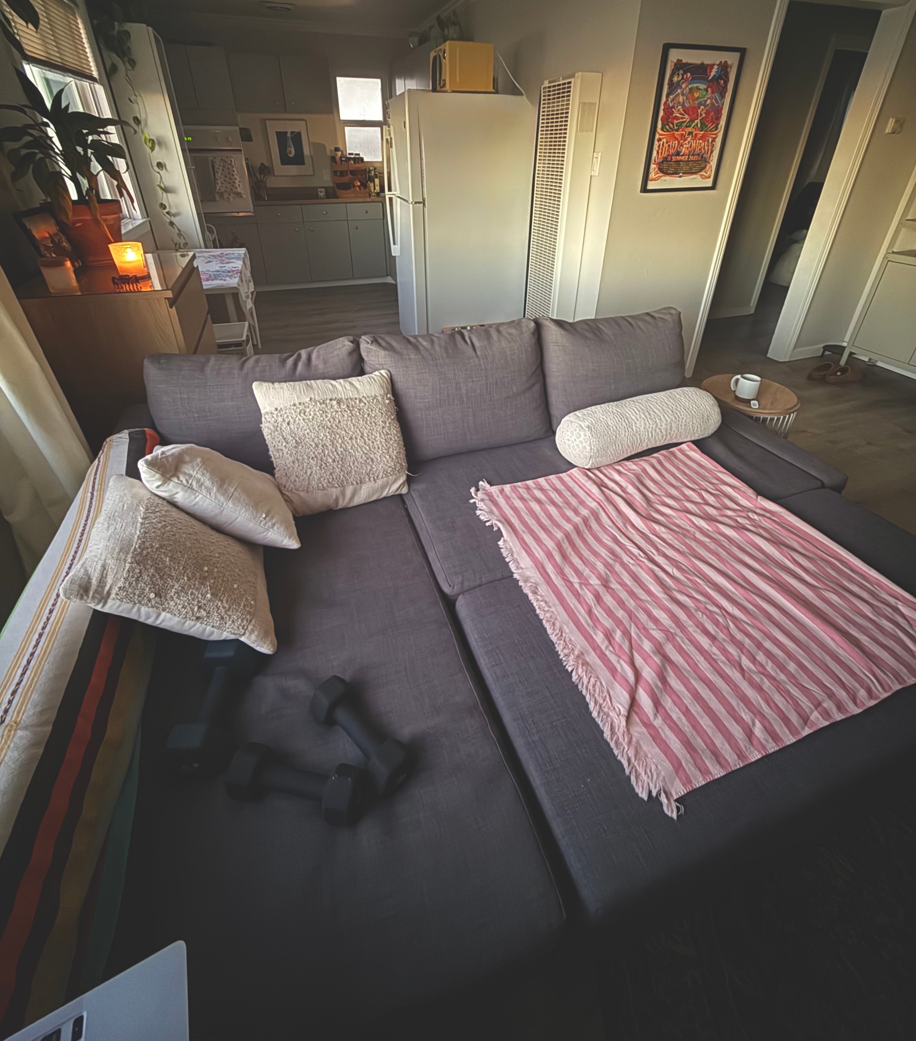 After this class my nervous system feels more regulated ❤️ feeling load on my muscles and moving slow is very comforting to me. I did class on my pull out couch to stay comfy as possible. And did my push ups with my hands on the elevated edge of my couch with the rainbow blanket, felt great to have a little lift!