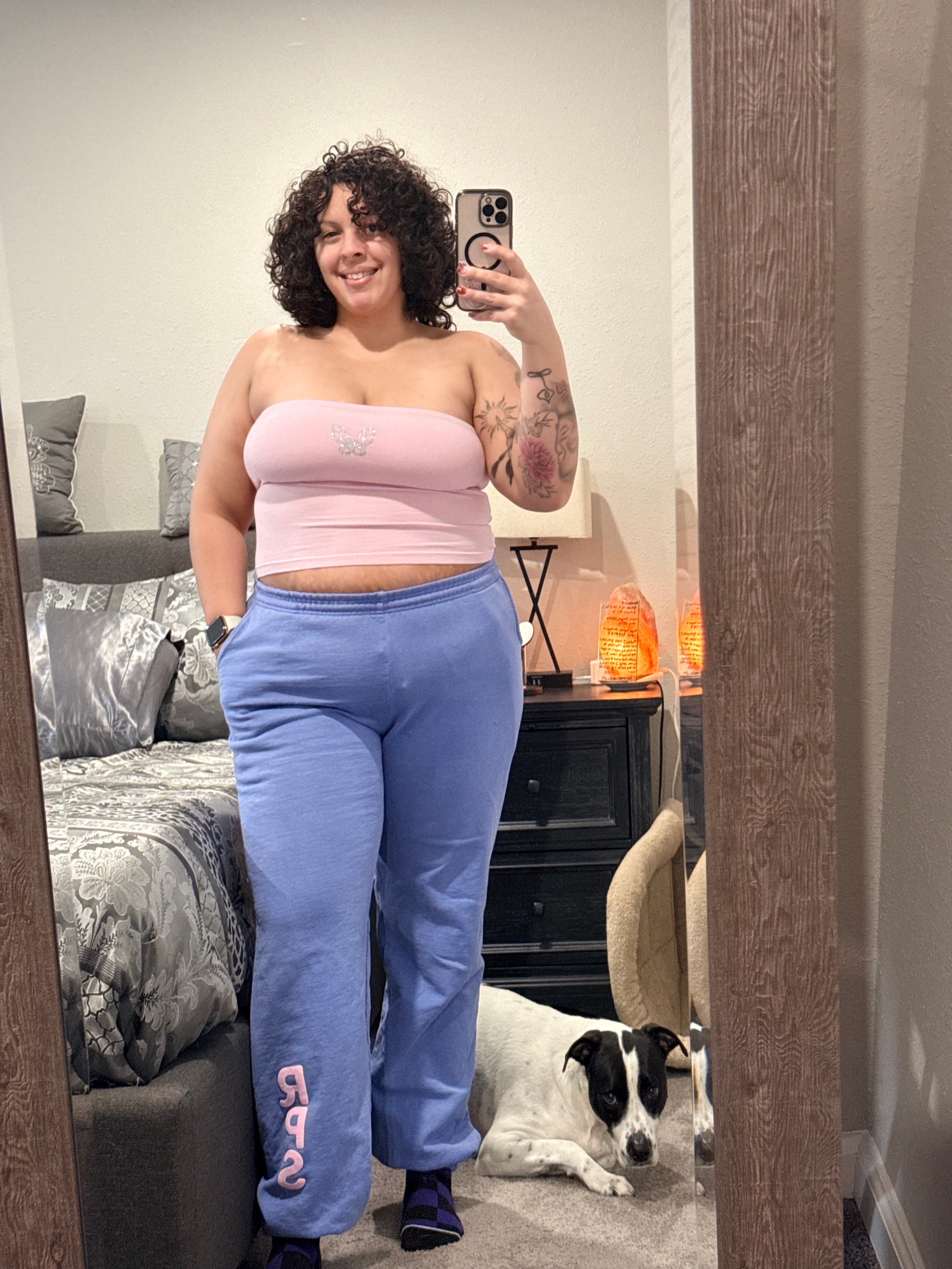 Bandit and I posing with our new RPS gear. I jumped 10x and although boobs bounced I did not get slapped in the face nor did they come out of my shirt. I don’t normally wear tubes but man is this comfy. Time to go twerk to some conejo malo 🤪🤪